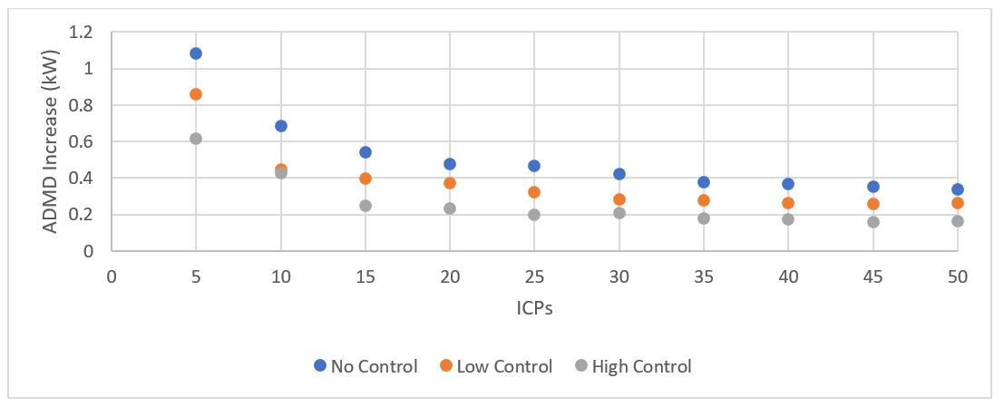 We also analysed the effect that EV chargers could have on our electricity network, represented by the increase in power of ADMD (After Diversity Maximum Demand) needed for distribution transformers. This analysis is now being used to inform our LV strategy, to assist how we support our customers.