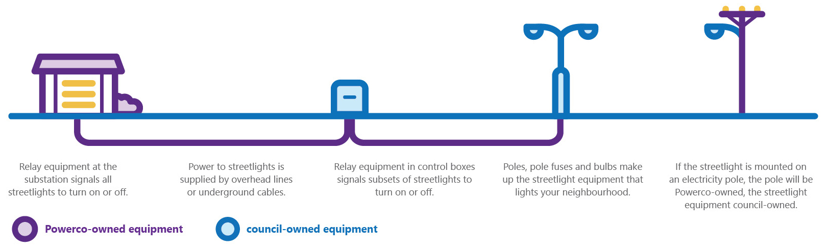Council contractors investigate all streetlight outages in the first instance and if the issue is with council-owned equipment they make the repairs.